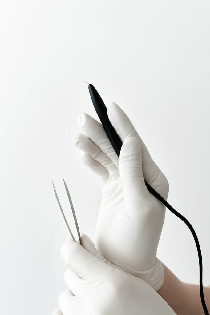 Am Tag der Behandlung muss das Haar leicht aus der Haut herausragen, damit es mit der Sonde erfasst werden kann.